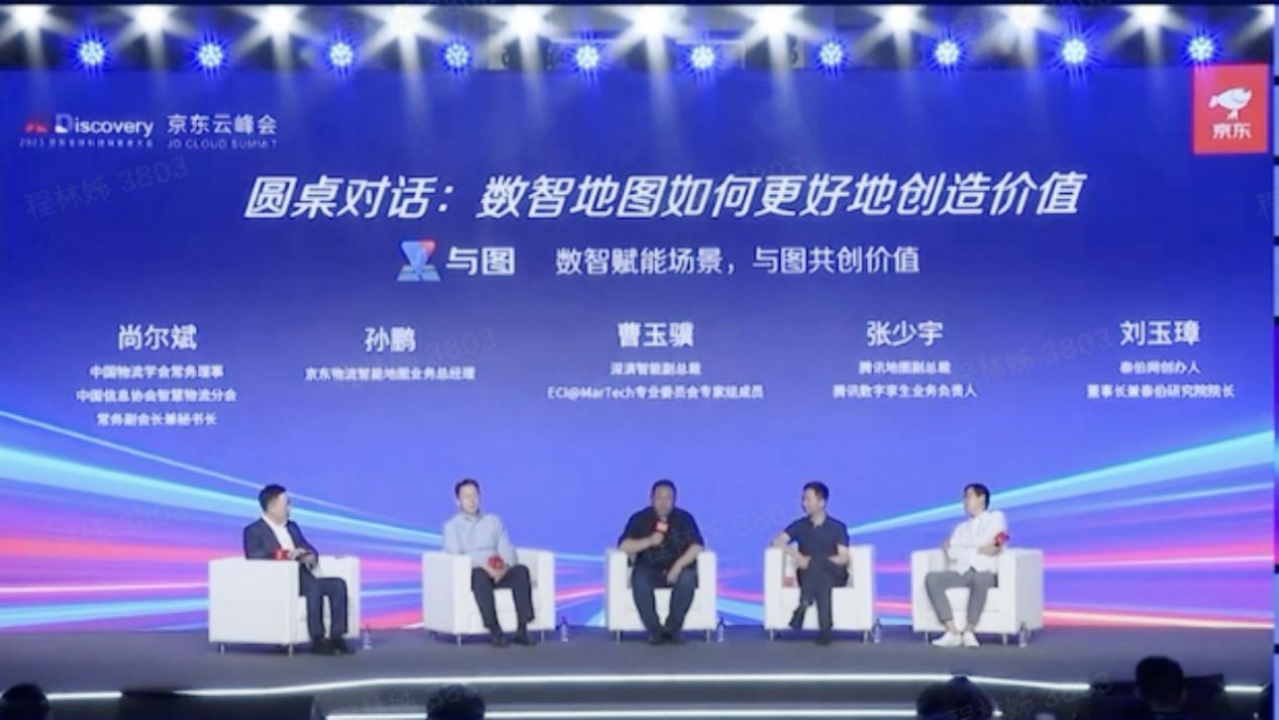 “数智化时代地图应用如何更好地赋能场景创造价值”的圆桌论坛,中间为人生就是博智能副总裁曹玉骥